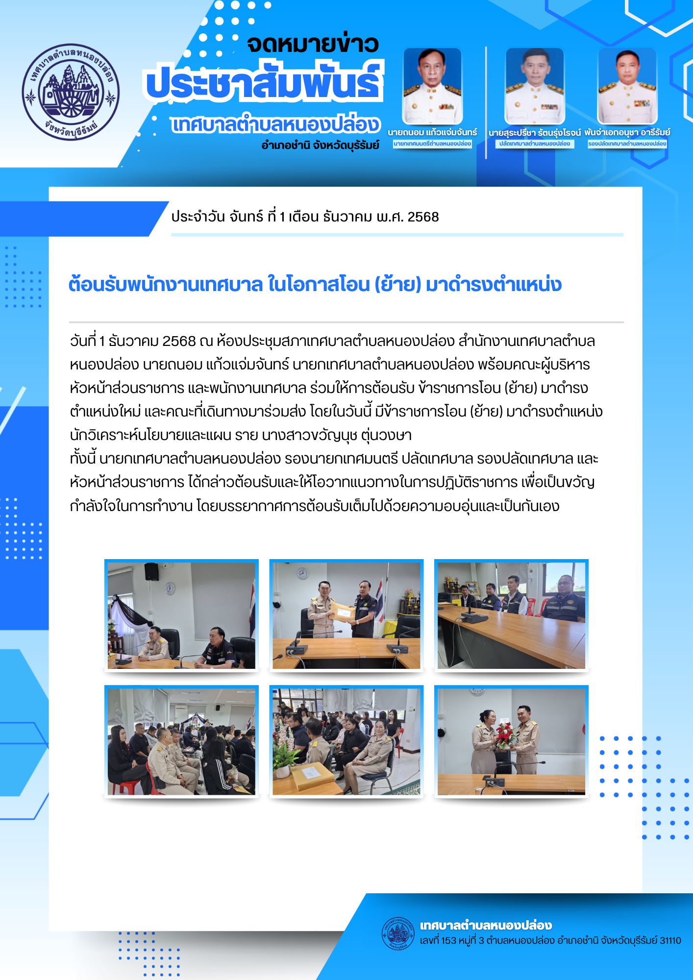 ยินดีต้อนรับพนักงานเทศบาล ในโอกาสโอน (ย้าย) มาดำรงตำแหน่ง