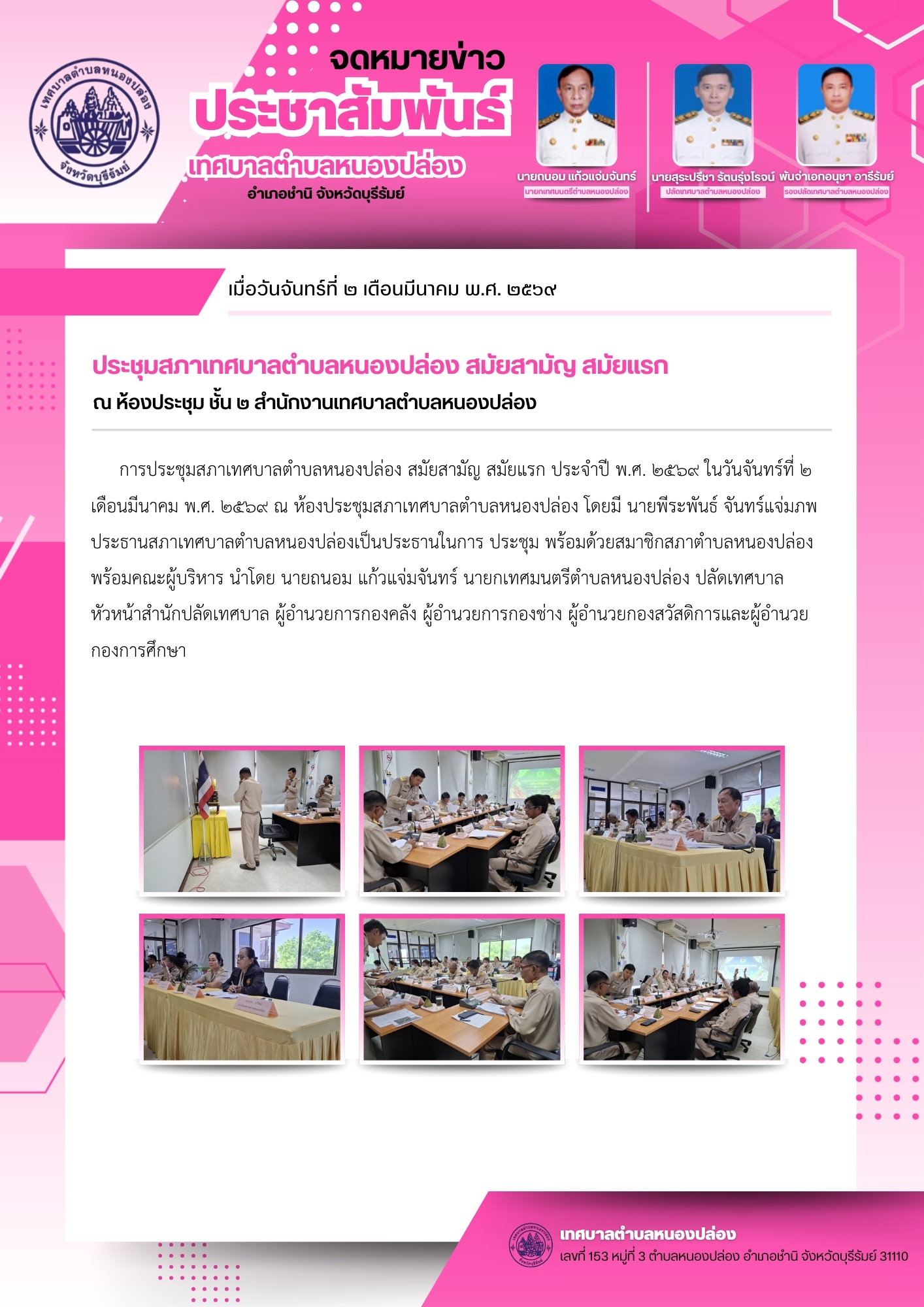 ประชุมสภาเทศบาลตำบลหนองปล่อง สมัยสามัญ สมัยแรก ประจำปี 2569